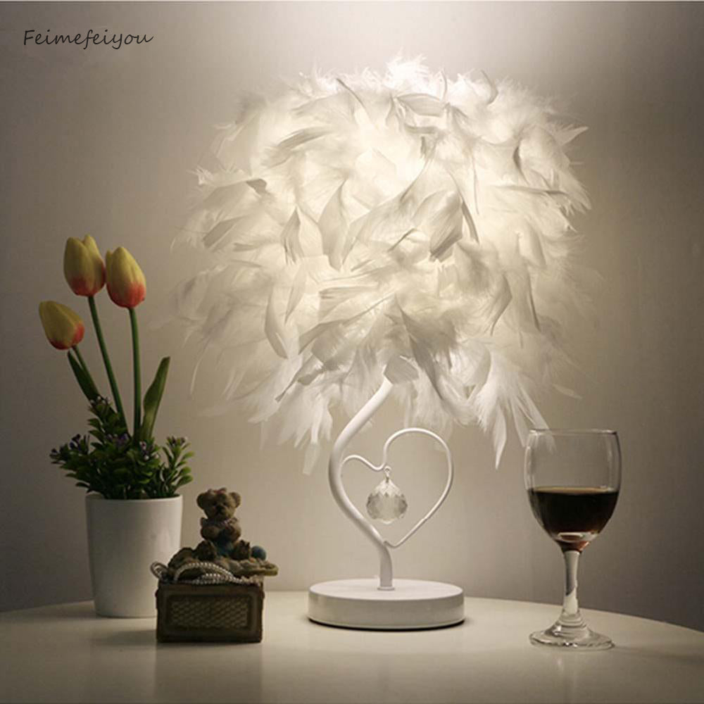 Feimefeiyou Bedside Reading Room Sitting Room Heart Shape Feather Crystal Table Lamp for bedroom Light art deco home planetarium